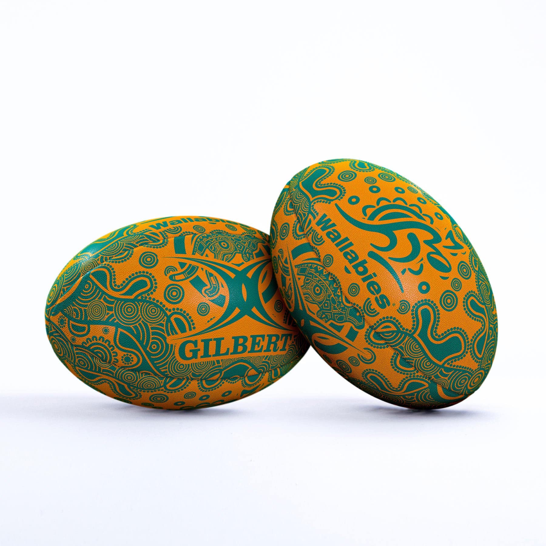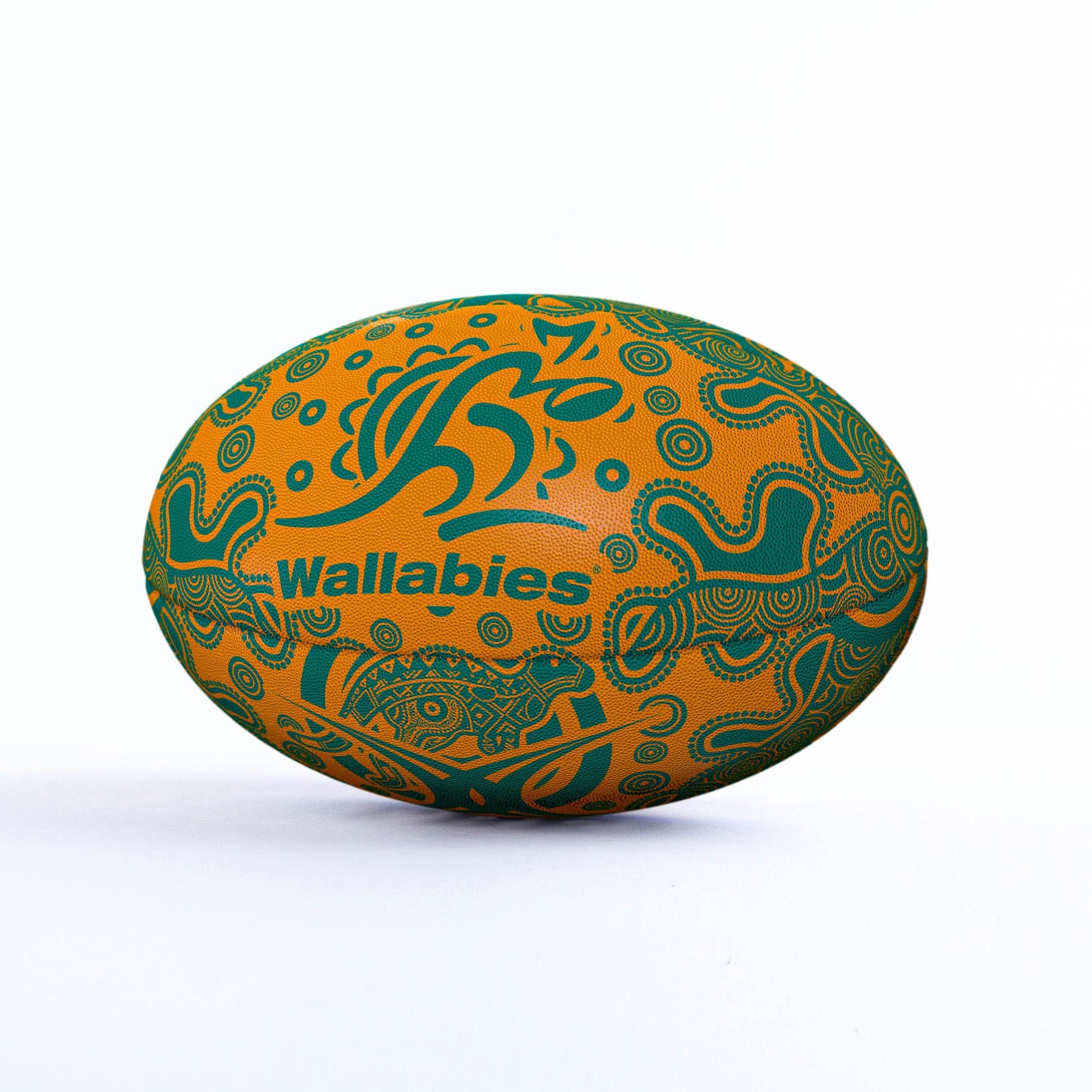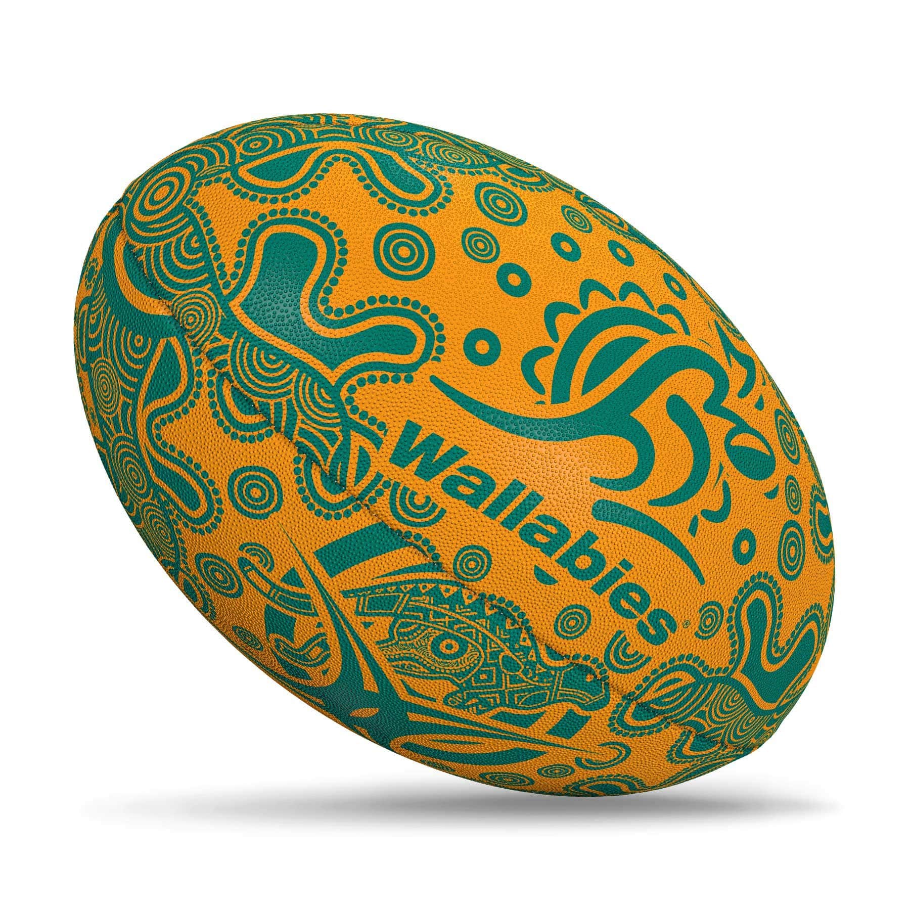 Gilbert, the most trusted name in rugby balls, has created an authentic Wallabies Randoms Rugby Ball, featuring Wallabies inspired indigenous artwork throughout. This Wallabies supporter ball that celebrates native Australia is great for training.