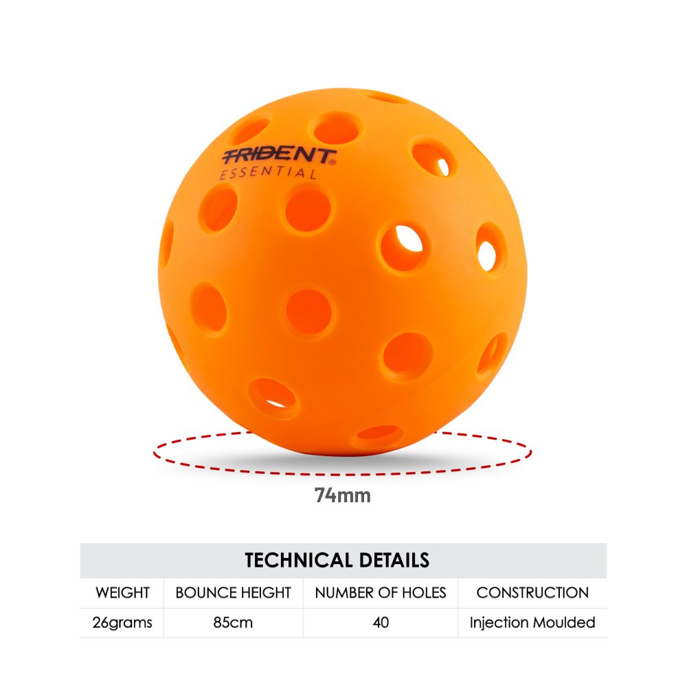 Trident Essential Pickleballs are designed for everyday play. The Essential Ball is injefction molded, which offers balanced flight and control.